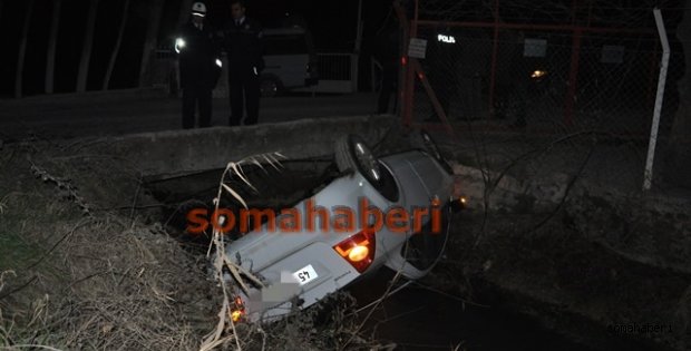 İstasyon Mahallesi Mezbaha Mevkiinde Korkulukları olmayan köprüden SU Kanalına uçan İ……m Ö…….N Kullandığı 45 V.. …2 Plakalı aracıyla somaya gelirken bir anda kanala uçan Ö….R Köprünün yanında bulunan Kömür Ofisinde çalışanlar tarafından duyulması ile 112 ve Soma İtfaiyesi Kurtarma araçları yardımı ile Çıkarıldıktan sonra tedavisi yapılmak üzere Soma Devlet Hastanesine kaldırıldı Kaza ile ilgili araştırmaların yapıldığı öğrenildi.