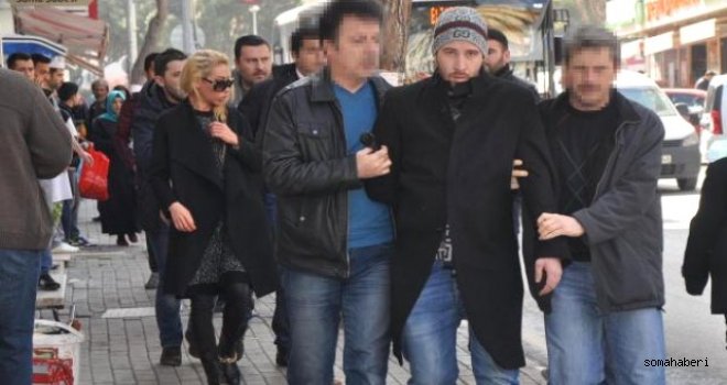 Soma'daki bir banka şubenin ATM'sine üç gün önce düzenek yerleştirip kart kopyalayan biri kadın üç şüphelinin yakalanması için polis çalışma başlattı. Güvenlik kamarası görüntülerinden eşkalleri belirlenen şüphelilerin bugün yine düzeneğin yerleştirildiği ATM'nin karşısındaki bir kafede oturduklarını fark eden polis, zanlıları yakaladı. ATM'yi kontrol eden ekipler, kart kopyalama düzeneğini buldu. Gözaltına alınan 3 şüpheli emniyete götürüldü. Bulgaristan uyruklu olduğu açıklanan şüphelilerin adliyeye sevk edileceği öğrenildi.