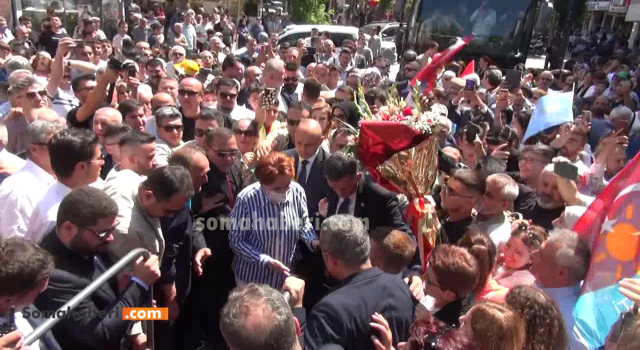 İyi Parti Genel Başkanı meral Akşener Manisa'nın Soma ileçsinde partilileri ve vatandaşlarla buluştu. Atatürk Caddesi'ne seçim otobüsüyle gelen Akşener'i kalabalık bir topluluk karşıladı.
