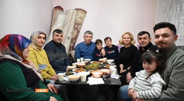 Soma Belediye Başkanı Sercan Okur, 2014’teki maden faciasında eşini ve oğlunu kaybeden Meliha Avkaş’ın iftar sofrasına konuk oldu. Ramazan’ın bereketi ve birlik ruhuyla gerçekleşen ziyarette, maden şehitleri bir kez daha rahmetle anıldı.