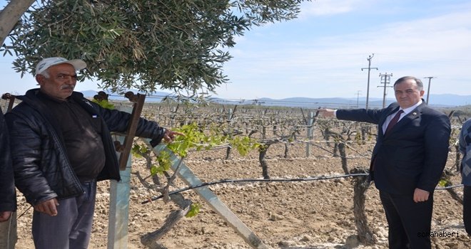 MHP Manisa Milletvekili Erkan AKÇAY’a dertlerini anlatan Sazobalı çiftçiler “ Bu zamana kadar hep yanımızda yer aldınız. Çiftçinin, esnafın, memurun, işçinin sorunlarını hep Meclis’de dile getirdiniz. 22-24 Nisan tarihleri arasında son üç gündür aşırı soğuklar nedeniyle don meydana geldi. Bundan dolayı yaklaşık 1000 dekar üzüm bağında yüzde 80 ile yüzde 100 oranında zarar meydana geldi. Yaklaşık 500 dekar domates, karpuz ve kavun tarlasında yüzde 50 ile yüzde 100 arasında zarar meydana geldi. Mutlu günümüzde yanımızda yer aldığınız gibi bu kötü günümüzde de ilk olarak yine siz geldiniz. Bizim sözcümüz olacağınızdan, zararlarımızın karşılanması için gereğini yapacağınızdan hiçbir kuşkumuz yok.”dedi. MHP’li AKÇAY da “ Sazobalı çiftçilerimizin zararlarının karşılanması için ne gerekiyorsa yapacağımızdan hiç kimsenin kuşkusu olmasın.” dedi.