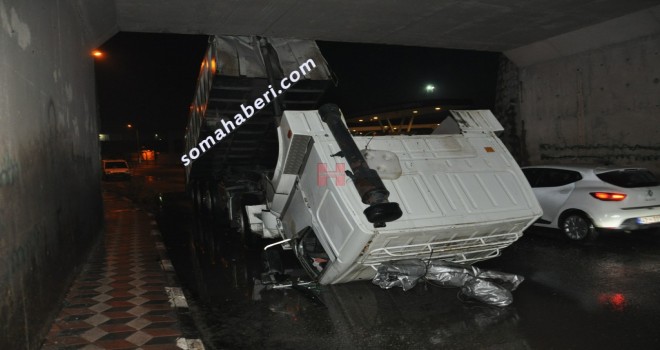 O.... A....’ın kullandığı 45YB 07....Plakalı damperli kamyon damperin açılması ile bir anda çevre yolu alt geçidinden geçmeye kalkınca 4.00 m yüksekliğe izin veren alt geçit köprüsüne takıldı.