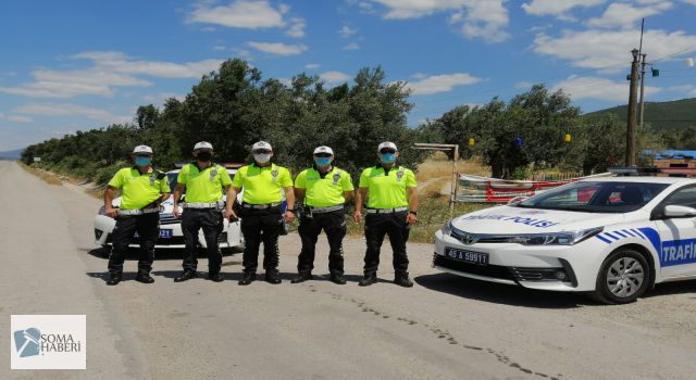 Soma’da da Bölge Trafik İstasyon Amirliği ekipleri, Soma-Bergama-İzmir karayolunda uygulama noktası oluşturdu.