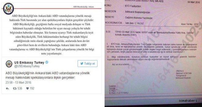 “Birçok kaynaktan teyit edilen bilgilere göre PKK, PYD ve sol terör örgütler, 20 Mart’ta Türkiye’yi kan gölüne çevirecek büyük bir kalkışmaya hazırlanıyor. Emniyet istihbaratı, PKK/KCK ile PYD/ YPG’li teröristlerin ‘fedai’ türü eylemlerde kullanmayı amaçladığı 20 bombalı aracı tespit etti. Yapılan terör uyarısında, özellikle AK Parti teşkilat binaları, TBMM, askeri yerleşkeler, diplomatik misyonlar, turistik yerler, havalimanları, hassas bölgeler, AVM’ler, meydanlar, ulaşım araçları, miting alanları, ibadet yerleri, metro istasyonları, kamu binaları, polis ve askeri noktalarda olası bir saldırıya karşı ‘müteyakkız’ olunması istenildi. Nevruz öncesi hafta olması nedeniyle protesto, gösteri ve olayların artması, bunlara yönelik güvenlik tedbirlerinin de sıklaşması bekleniyor. O yüzden, gruplaşmanın oluştuğu her yerden, hedef olabilecek yerlerden uzak durun.”
