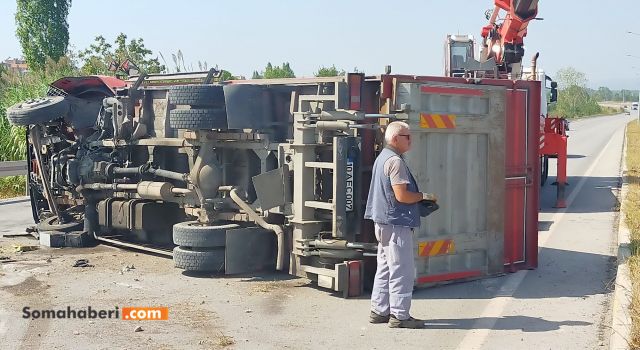 Soma Çevre Yolundaki Kazada 1 kişi yaralandı. Kaza bugün saat 13.05 sıralarında meydana geldi. Çevre yolu İsdasyon mah üst geçit mevkiinde meydana geldi. 10 AAC 007 Plakalı Abdullah C nin kullandığı kamyon Bergama yönüne giderken bir anda karşı şeride geçerken aydınlatma direğine çarpması sonucu devrildi. O anda karşı şeritten araç gelmemesi diğer bir kazayı önledi.Yaralanan Abdullah C 112 nin ilk tedavinin ardından Soma Devlet Hastanesine Tedavi içn götürüldü.Polis Kaza İle lgili Soruşturma başlattı.