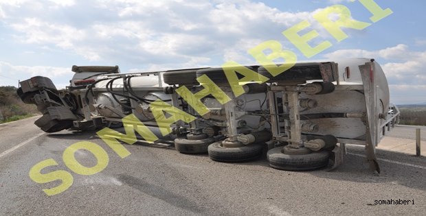 Çift yönlü Soma Bergama yolunda Saat 1400 Bergama tarafına gitmekte olan 42 PH. ….2. Tır Direksiyon hâkimiyetini kaybedince Bir anda Su menfezlerini aşarak karşı şeride geçti.