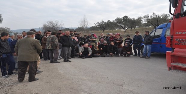 Yırca Köyünde yaşayan köy halkı, kül taşıyan üstü açık kamyonların köylerinden geçtiğini öne sürerek, eylem yaptı.