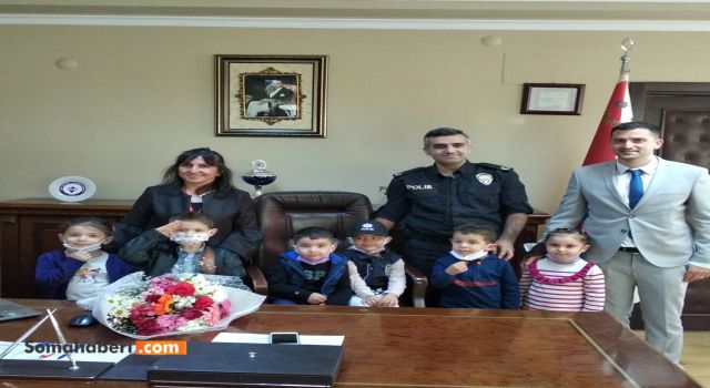 Nene hatun anaokulu 4 yas grubu öğrencileri, öğretmenleri Gülşah Yüce ve okul idaresi ile birlikte Soma ilce emniyet müdürlüğüne ziyarette bulunarak Polis haftasını kutladı. Ilce emniyet müdürü tarafından son derece sıcak bir şekilde karsilanan minikler polislik mesleğinin önemi hakkında bilgi aldıktan sonra emniyet binasını gezdiler ve ardından ekip otosu ile gezintiye çıktılar. Polisin güvenliğimizin temel taşı oldugunu belirten Okul müdürü Ahmet Yüce misafirperverlikleri sebebi ile tüm ilce emanet Müdürlüğü personeline teşekkür etti