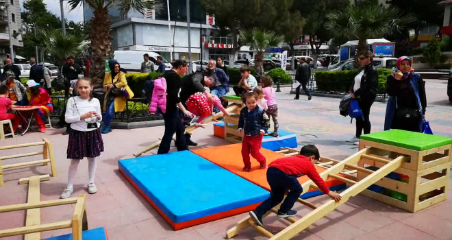 İki Gün Soma’da kalacak olan oyun karavanı Cengiz Topel Meydanında çocukları eğlendirmeye başladı.