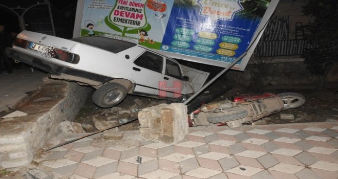 Gaziosmanpaşa caddesinden uygulama yapan trafik ekiplerinin kontrolü sırasında ,iddiaya göre 45 Y 6.... Plakalı aracıyla beş yol istikametine hızlı bir şekilde geldiği öğrenilen (Ömer Ç.... 1996) genç kontrol noktasına gelmeden bir anda direksiyonu Silman sk istikametine kırınca direksiyon hakimiyeti kaybeden Ömer Ç..... reklam tabelalarını yıkarak banketlerden bir metreden aşağıya uçtu.Aracıyla uçtuğu yerde işe gitmek için 45 YA 9148 Plakalı motor’u da ezmiş oldu.