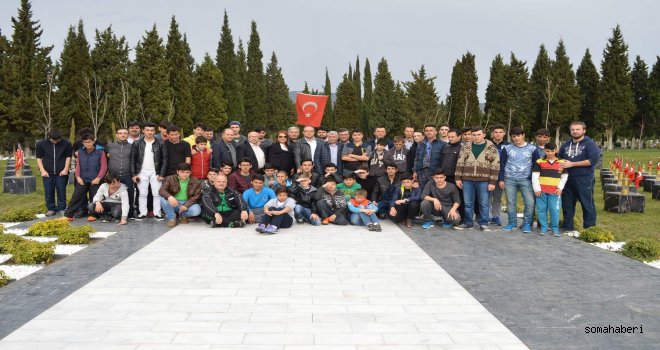 Ziyaret sonrasında kısa bir açıklama yapan AK Parti Manisa Şehzadeler İlçe Başkanı Ahmet Tonguç, “Kara elmas diyarı Soma ilçemizde, yerin yüzlerce metre altında ekmeğini taştan çıkaran madenci kardeşlerimizle ilgili 13 Mayıs 2014 tarihinde gelen kara haber yüreklerimizi parçalamıştı. Ogün yaşadığımız büyük acıyı hala yüreklerimizde hissediyoruz. Sosyal Sorumluluk projelerimiz kapsamında Kırkağaç’taki kampa getirdiğimiz gençlerimizi hemen yanı başımızdaki Soma Maden Şehitliğinde yatan şehit madenci kardeşlerimizi ziyaret etmeden ve ettirmeden Manisa’ya dönüş yapamazdık. Gençlerimizle birlikte yaptığımız ziyarette şehit madenci kardeşlerimiz için duada bulunduk.”diye konuştu.