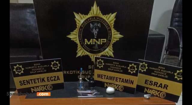 21.05.2023 günü İl Emniyet Müdürlüğü Soma Narkotik Suçlarla Mücadele Büro Amirliği görevlilerimizce uyuşturucu veya uyarıcı madde ticareti yapan, nakleden ve kullanan şahıslara yönelik yapılan çalışmalar kapsamında ilçe içerisinde durdurulan bir araçta ve araç içerisinde bulunan 1 şahsın ikametinde yapılan aramada;