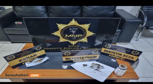 İl Emniyet Müdürlüğü Soma Narkotik Suçlarla Mücadele Grup Amirliği görevlilerince uyuşturucu veya uyarıcı madde ticareti yapan, nakleden ve kullanan şahıslara yönelik yapılan çalışmalar kapsamında Soma ilçesinde durdurulan şahısların üzerinde yapılan aramada;