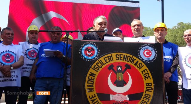 Türkiye Maden İşçileri Sendikası üyesi madenciler, bugün Manisa'nın Soma ilçesi Cengiz Topel Meydanı’nda bir araya gelerek ithal kömür alımını protesto etti. Eylemde konuşan Sendika Genel Başkanı Nurettin Akçul, şunları söyledi:
