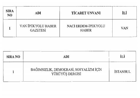 İşte kapatılan 1 gazete ve 1 derginin adı: