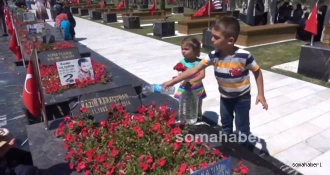 Mezarı başında dualar yapıldı fatihalar okundu.Bazen babaları öldüğünde daha ufak yaşta olanlar ziyarete geldiklerinde birşeyleri anlamak istesede çocukluğun verdiği duyguyla sadece boynu bükük bir şekilde babasının mezarına bakanlar,adeta babasının susadığını düşünerek şişeyle su getirenler ve ufak bir çocuğun şişenin kapağı ile su taşıması mezarlıktakileri duygulandırdı. Geçen yıl babası Ali Yüksel’in mezarına yazdığı yazıda, baba ben pilot olacağım diye Mektup bırakan Betül Yüksel ve hayalini THK Tarafından gerçekleştirilen Betül Yüksel senin yüzünü kara çıkarmayacağım demesi bu sevincini babasının kabri başında paylaşması ilgi odağı oldu baba artık ben iyi bir insan olacağım seni çok seviyorum senin yerin cennettir