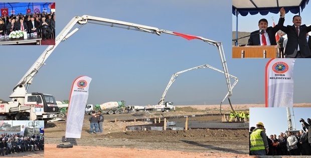 97 Firmanın katıldığı ihalede Umut Gıda San Şirketinin aldığı ihalenin iller bankası kredisiyle2.970.000 Tl kullanılacağı belirtilirken Terminal Binasının 2216 m 2 olduğu belirtilmiştir. Temel atma töreninde konuşan Belediye Başkanı Hasan Ergene Hizmet yapmaya devam ediyoruz dedi kısa bir süre içerisinde bitmesi planlanan terminalin Somaya değer kazandıracağını belirtiler. Daha sonra konuşmalarına devam eden Manisa Millet Vekili Hüseyin TANRIVERDİ KONUŞMASINA şöyle başladı. Biz iktidara geldiğimizden bu yana hizmetlerimize devam ediyoruz Somada nefes alamıyoruz dediniz Bacaya filitre taktırdık yapamaz dediler bende yapamaz isek beni bacaklarımdan asın demiştim. İstasyon Arka mahaleye demiryolu üst geçit körrüsü yaptırdık Köprü bitmek üzere 1 Ay içerisinde trafiğe açacağız. 300 Yataklı Hastane bitiyor hizmete girmek üzere Soma sıcak sudan ısınmaya başladı ne dediysek yaptık Biz Hasan Kardeşimle beraberiz biz hizmet için varız Artık köy belde yok mahalle var, hizmet var, dediler. daha sonra beton atımı yapılarak inşaat başlamş oldu