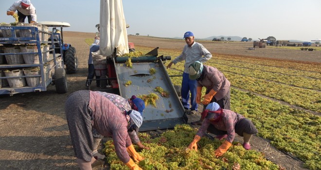 Sabah saat dörtte kalkan üzüm toplama işçileri üzüm bağlarında çalışmak için ayrılırken, daha sonra üreticinin tarlasından kimi üzüm keserek kimi toplayarak kimin su dağıtarak kimi ise sergide çalışarak 65 ile 70 lira arasında yömüye alıyorlar.